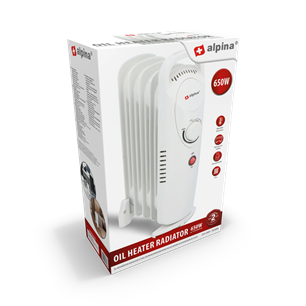 Az Alpina kompakt, 5 tagú olajradiátora ideális kiegészítő fűtés kisebb helyiségekbe, irodákba vagy hálószobákba. Az 650 W teljesítményű készülék halk működéssel biztosítja a kellemes meleget, miközben egyszerűen kezelhető a beépített hőfokszabályzóval. Kis mérete miatt könnyen hordozható és tárolható.