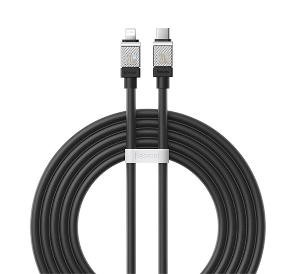 BASEUS COOLPLAY adatkábel (Type-C - lightning, 20W, gyorstöltő, 200cm, törésgátló) FEKETE