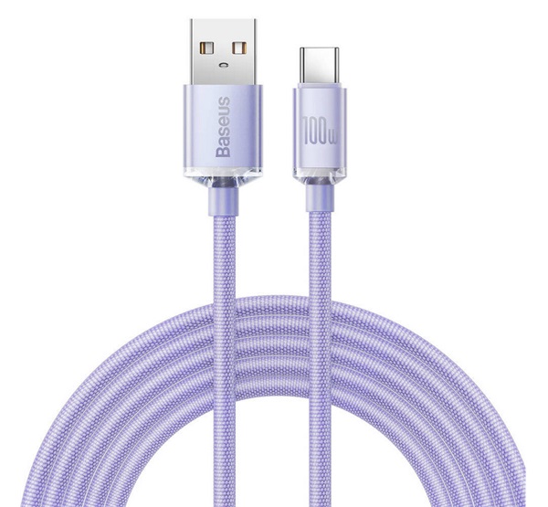 BASEUS CRYSTAL SHINE adatkábel (USB - Type-C, 100W, PD gyorstöltő, 200cm, cipőfűző) LILA