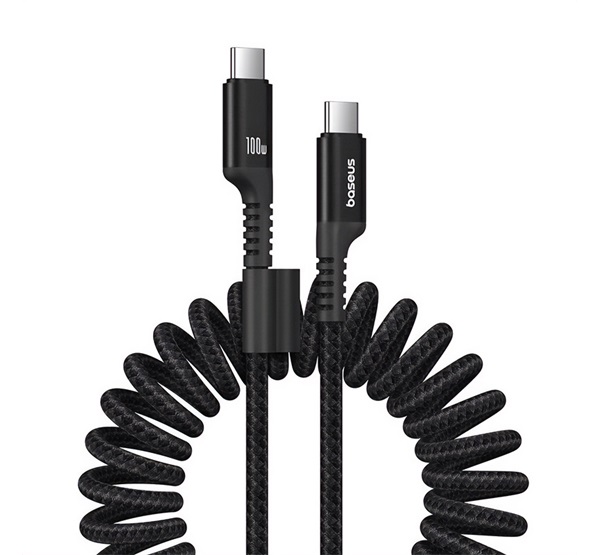 BASEUS FISH-EYE adatkábel (Type-C - Type-C, 100W, PD gyorstöltő, 100cm, spirálkábel) FEKETE