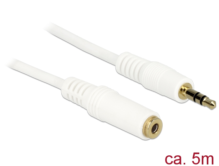 Delock Stereo Jack hosszabbító kábel 3.5 mm 3 pin apa > anya 5 m fehér