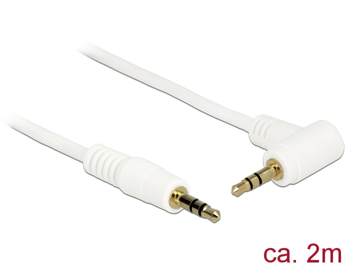Delock Stereo Jack kábel 3.5 mm 3 pin apa > apa 2 m 90° fehér