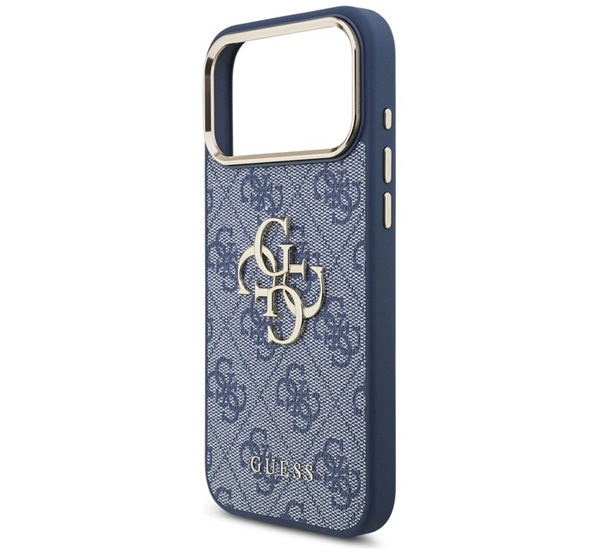 GUESS 4G BIG CLASSIC LOGO szilikon telefonvédő (ütésállóság, bőr hatású hátlap) KÉK/BARNA Apple iPhone 17 Pro Max