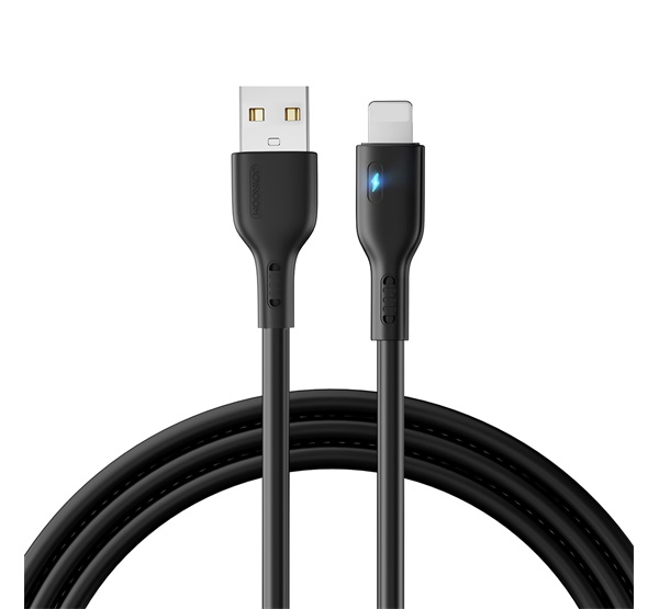 JOYROOM adatkábel (USB - lightning, 2.4A, 200cm, LED jelzés) FEKETE