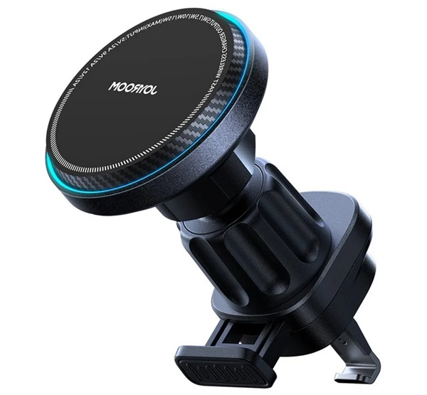 JOYROOM autós tartó (szellőzőre, 360°, wireless, gyorstöltő, 15W, mágneses, LED jelzés) FEKETE