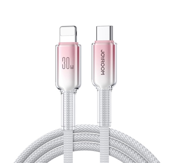 JOYROOM CRYSTAL-CLEAR adatkábel (Type-C - lightning, 3A, gyorstöltő, 120cm, cipőfűző) FEHÉR