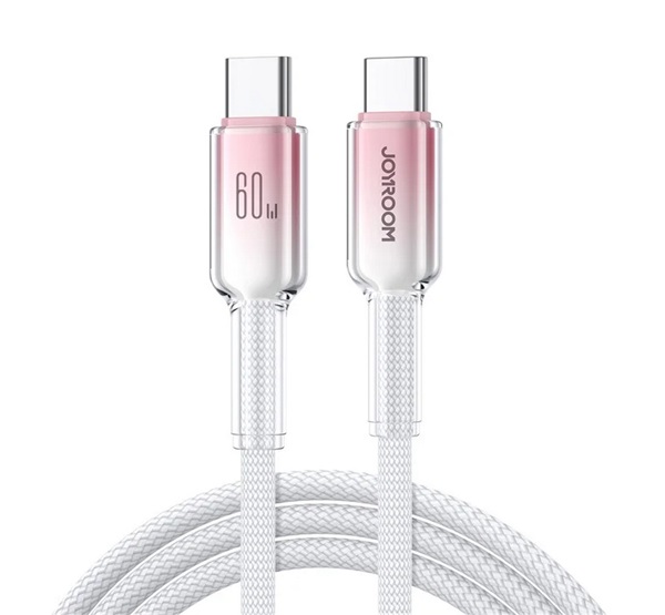 JOYROOM CRYSTAL-CLEAR adatkábel (Type-C - Type-C, 60W, gyorstöltő, 120cm, cipőfűző) FEHÉR