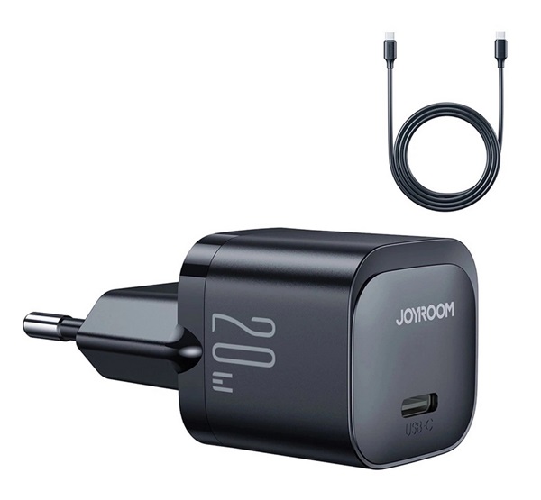 JOYROOM MINI hálózati töltő Type-C aljzat (20W, PD gyorstöltő + Type-C kábel) FEKETE