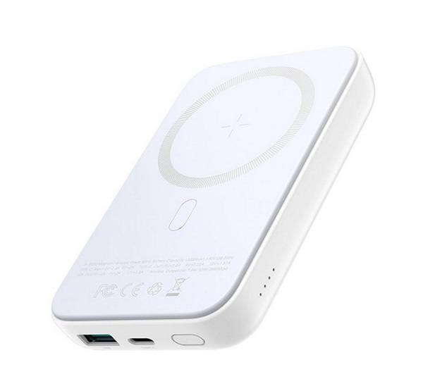 JOYROOM vésztöltő Type-C+USB aljzat (10000mAh, 20W, PD gyorstöltő, wireless, MagSafe, mini) FEHÉR
