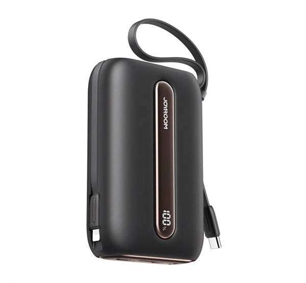 JOYROOM vésztöltő USB+Type-C aljzat (10000mAh, 22.5W, gyorstöltő + fix Type-C+lightning kábel) FEKETE