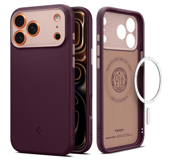 SPIGEN NANO POP szilikon telefonvédő (kameravédő, MagSafe) BURGUNDY Apple iPhone 17 Pro Max