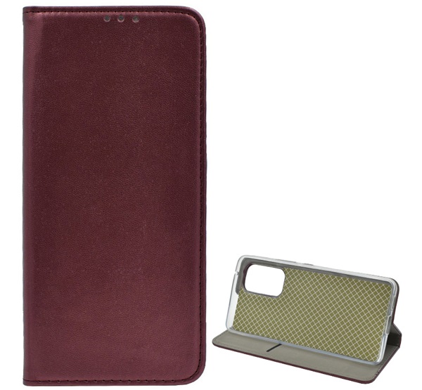Tok álló, bőr hatású (FLIP, oldalra nyíló, asztali tartó funkció) BURGUNDY - Samsung Galaxy A53 (SM-A536) 5G
