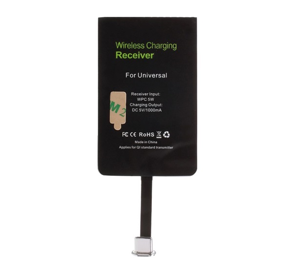 Töltő adapter vezeték nélküli töltéshez (QI Wireless, fogadóegység, öntapadó, Type-C csatlakozóhoz)
