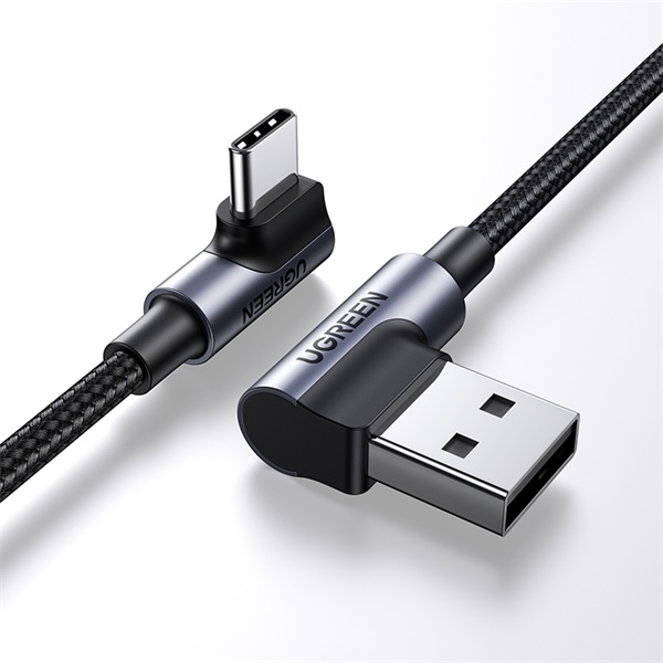 UGREEN Kábel USB 2.0 USB-A - USB-C, 90°-os, 480 Mbps, M/M, 1m, szürke