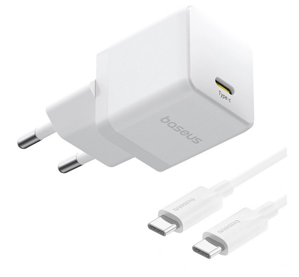 BASEUS PALM 1C hálózati töltő Type-C aljzat (20W, PD gyorstöltő 3.0 + Type-C kábel) FEHÉR