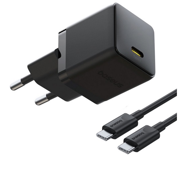 BASEUS PALM 1C hálózati töltő Type-C aljzat (20W, PD gyorstöltő 3.0 + Type-C kábel) FEKETE