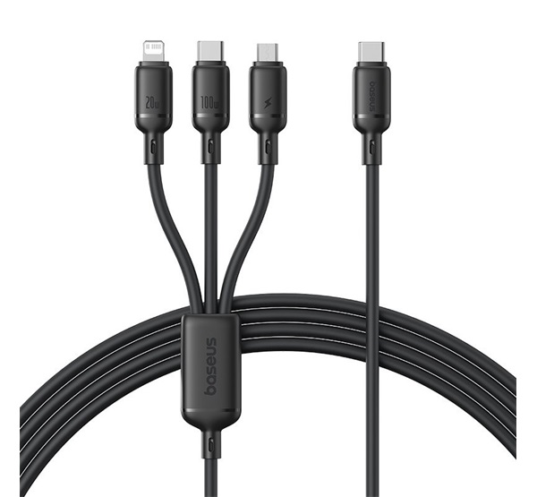 BASEUS SILKY adatkábel 3in1 (Type-C - Type-C/ lightning/microUSB, 100W, gyorstöltő, 150cm) FEKETE